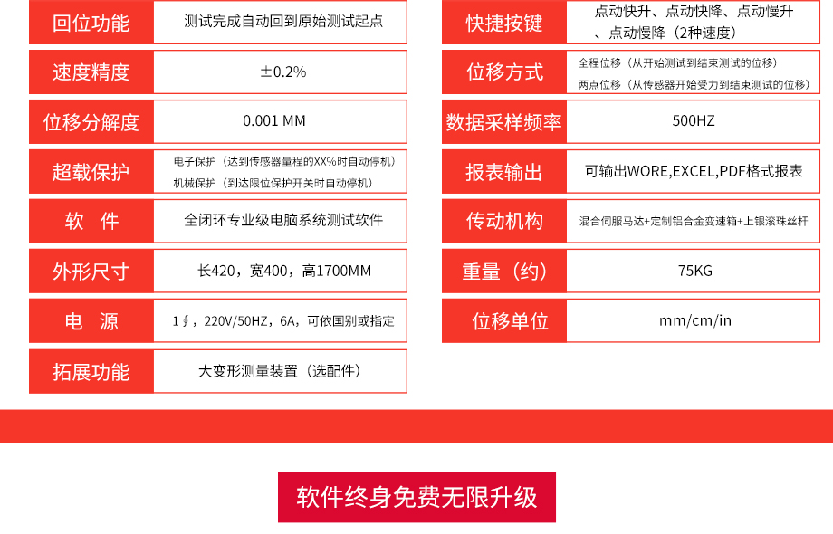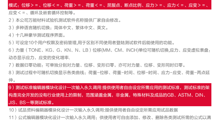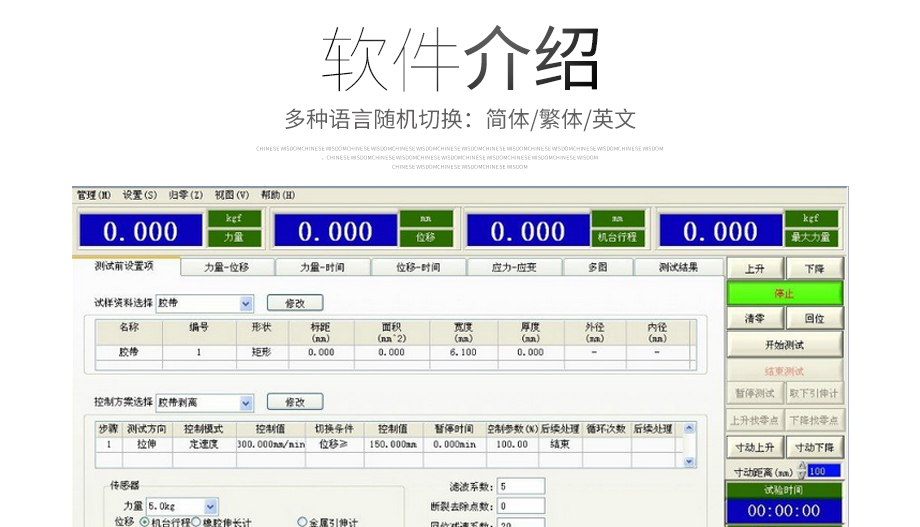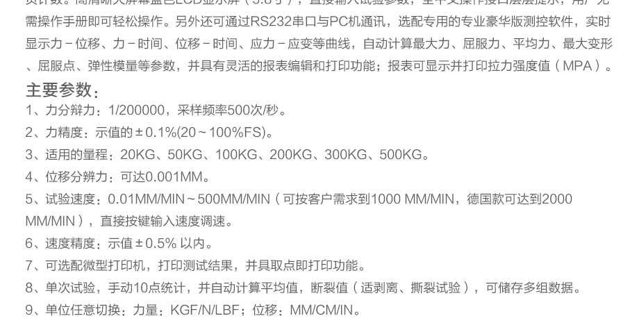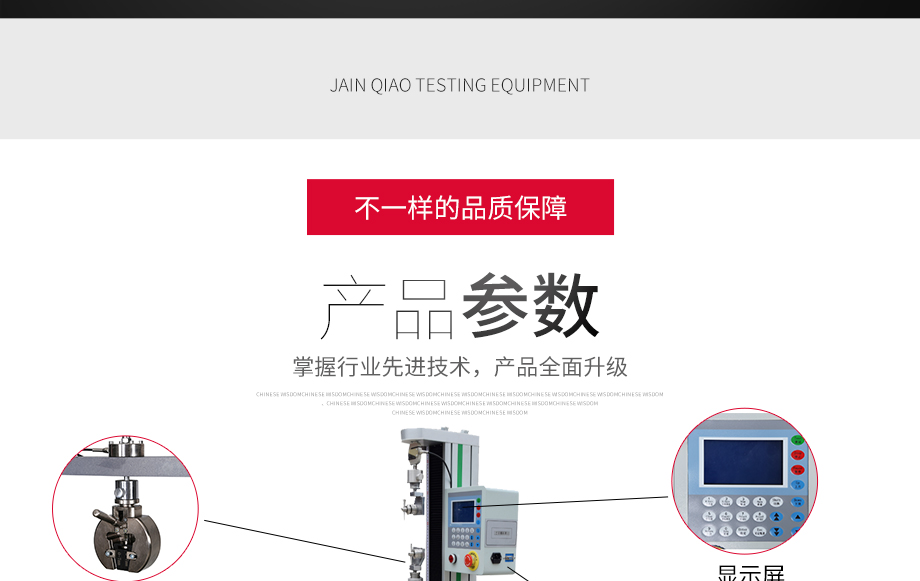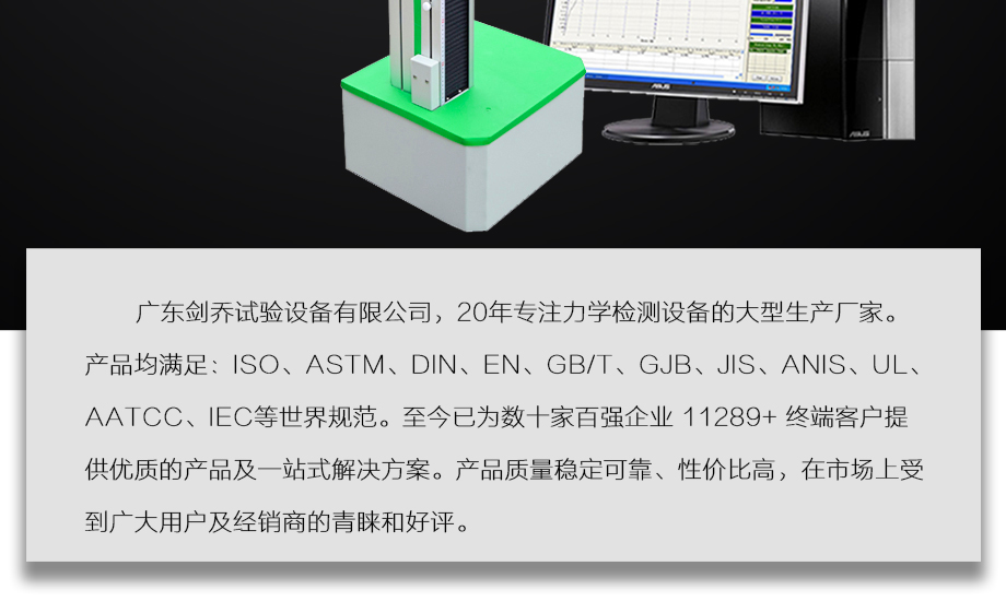 產品型號:JQ-8650 品牌:劍 喬 用途:本系列機廣泛用于各類五金、橡膠制品、鞋類、皮革、服裝、紡織、建材、絕緣體、電線、電纜、端子等各類材料。測試其拉伸、撕裂、剝離、抗壓、彎曲、抗剪切、定荷重、定位移、