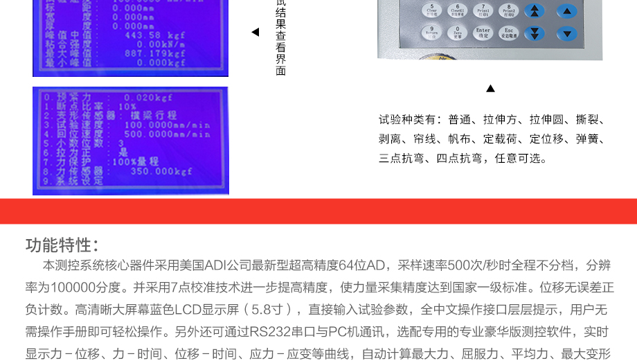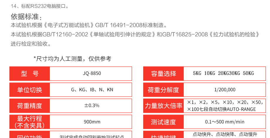 產(chǎn)品型號(hào):JQ-8850 品牌:劍 喬 用途:本系列機(jī)廣泛用于各類薄膜、五金、橡膠料、紡織、建材、絕緣體、電線、電纜、端子等各類材料。測(cè)試其拉伸、撕裂、穿刺、剝離、抗壓、彎曲、抗剪切、定荷重、定位移、三點(diǎn)抗折