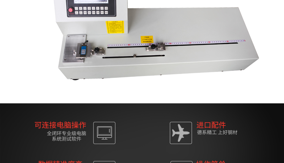 產品型號:JQ-200S 品牌:劍 喬 用途:本機是一款專業適用于膠粘劑、膠粘帶、不干膠、醫用貼劑、保護膜、離型紙、復合膜、人造革、編織袋、薄膜、紙張等相關產品的剝離、拉斷等性能測試的電子剝離試驗機,其最大試